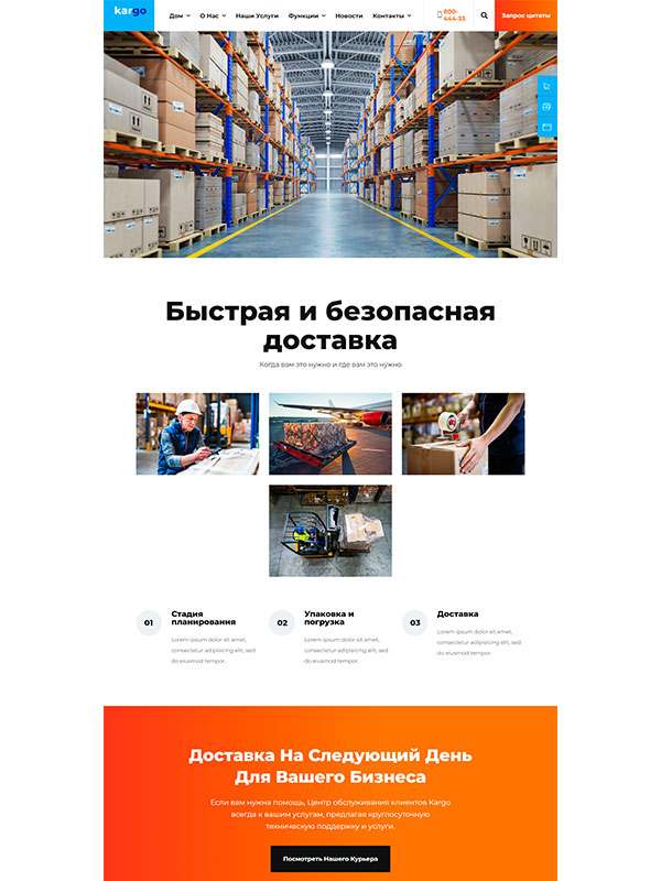 Готовые шаблоны сайтов по оказанию логистических и транспортных услуг — это отличный выбор для тех, кто ценит свое время и хочет получить профессиональный веб-сайт в кратчайшие сроки. Такие сайты гибко настраиваются под ваши уникальные потребности, позволяя легко изменять цвета, изображения и текстовый контент через интуитивно понятную систему управления сайтом без знания кода. Благодаря отзывчивому дизайну ваш сайт будет выглядеть превосходно на любом устройстве: смартфонах, планшетах и компьютерах.