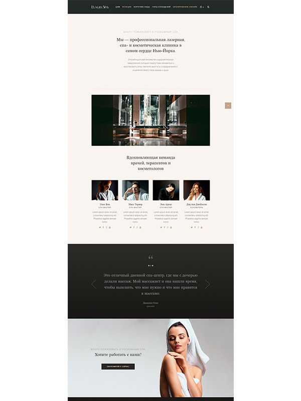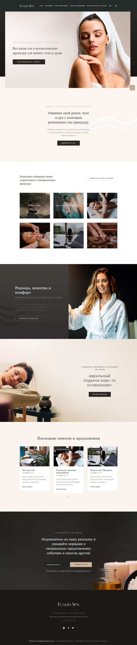 Готовые шаблоны сайтов для СПА салона — это отличный выбор для тех, кто ценит свое время и хочет получить профессиональный веб-сайт в кратчайшие сроки. Такие сайты гибко настраиваются под ваши уникальные потребности, позволяя легко изменять цвета, изображения и текстовый контент через интуитивно понятную систему управления сайтом без знания кода. Благодаря отзывчивому дизайну ваш сайт будет выглядеть превосходно на любом устройстве: смартфонах, планшетах и компьютерах.