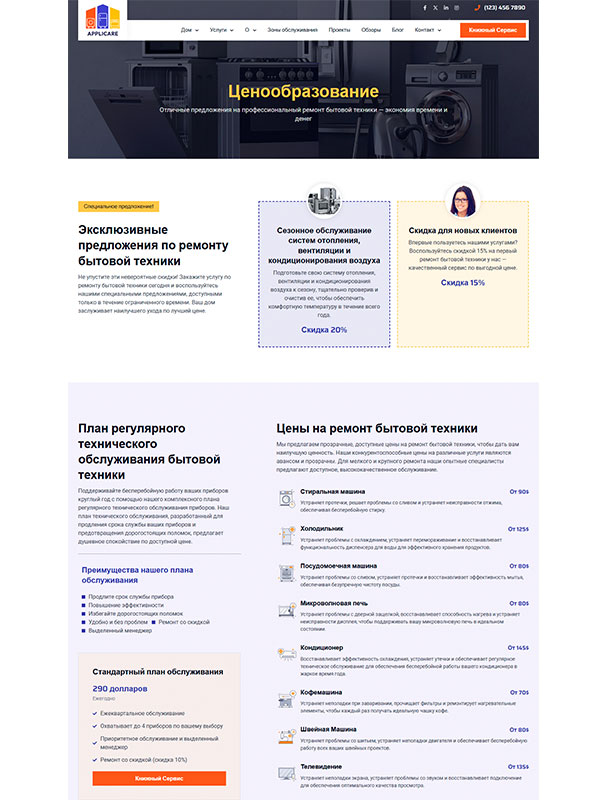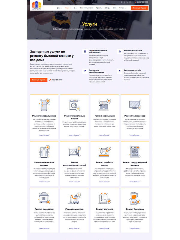 Сайт услуг по ремонту бытовой техники